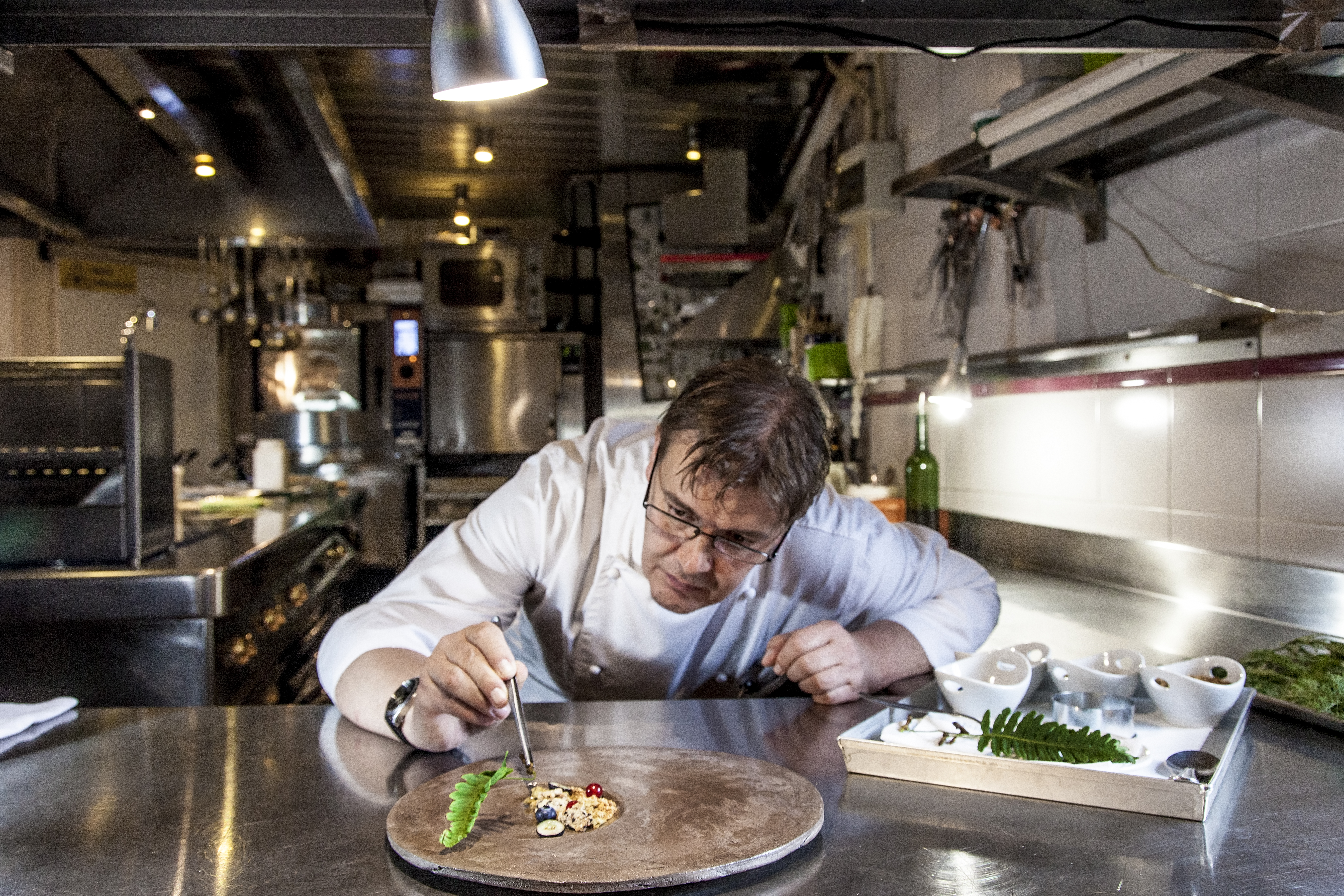 Alessandro Gilmozzi, born in 1965, has been challenging himself in the kitchen every day since 1990, when he opened the doors of his restaurant “El Molin” in Cavalese (TN), with the ambition of managing to express his own philosophy: in the picturesque Val di Fiemme, he presents mountain cuisine in an unusual manner. He likes to define it as “dolomitica”, because it is so closely linked with the local territory as to surpass time and become a new tradition. Over the years, constant research in the territory and collaboration with local producers has made this ancient mill an authentic cradle of creativity, and the patron’s kitchen, imbued with love and respect for the mountains, never ceases to amaze. Each new addition made to the menu is the fruit of painstaking, scientific research: from unusual raw materials, like bark or lichens, to the many mountain herbs that he studied and collects every day, either himself or in the company of a consulting botanical expert, all year round. Inventions which, blended with new cooking techniques (low temperature cooking, the creative use of smoke), accompany the guest into a world of tasty suggestions.