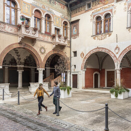 in the city of Depero, visiting museums, castles and eating in osterie (taverns)