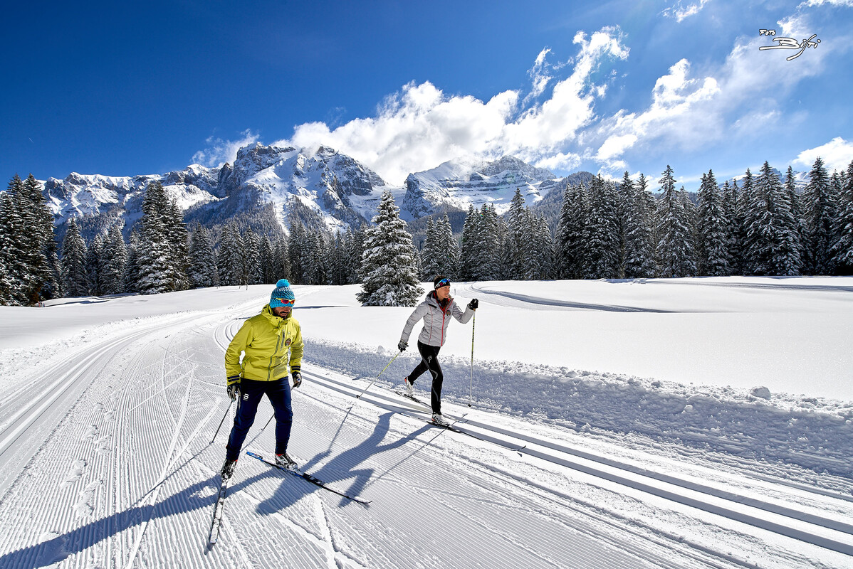 The trails of the Campo Carlo Magno cross-country centre are always covered with natural snow and traced daily. Four tracks meet FISI standards and unfurl for a total of 22 km - including also easy trails and a ski-school camp. The Italian Cross-Country Ski Federation organizes both individual and group classes, advanced courses and private school camps. It is also possible to try biathlon. You will be provided with changing rooms with shower facilities, ski, bob, sledge and snow shoe rental, ski deposit, parking-lot and a restaurant serving local dishes.