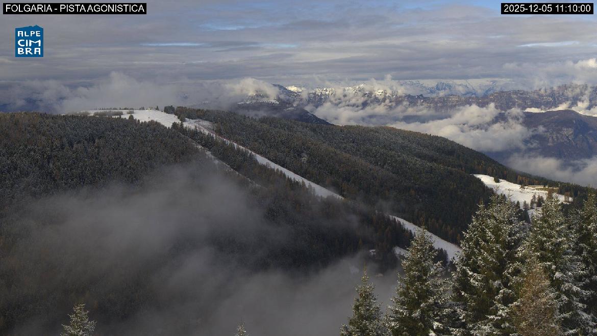 the Folgaria plateau, framed by forests and the Trentino peaks;