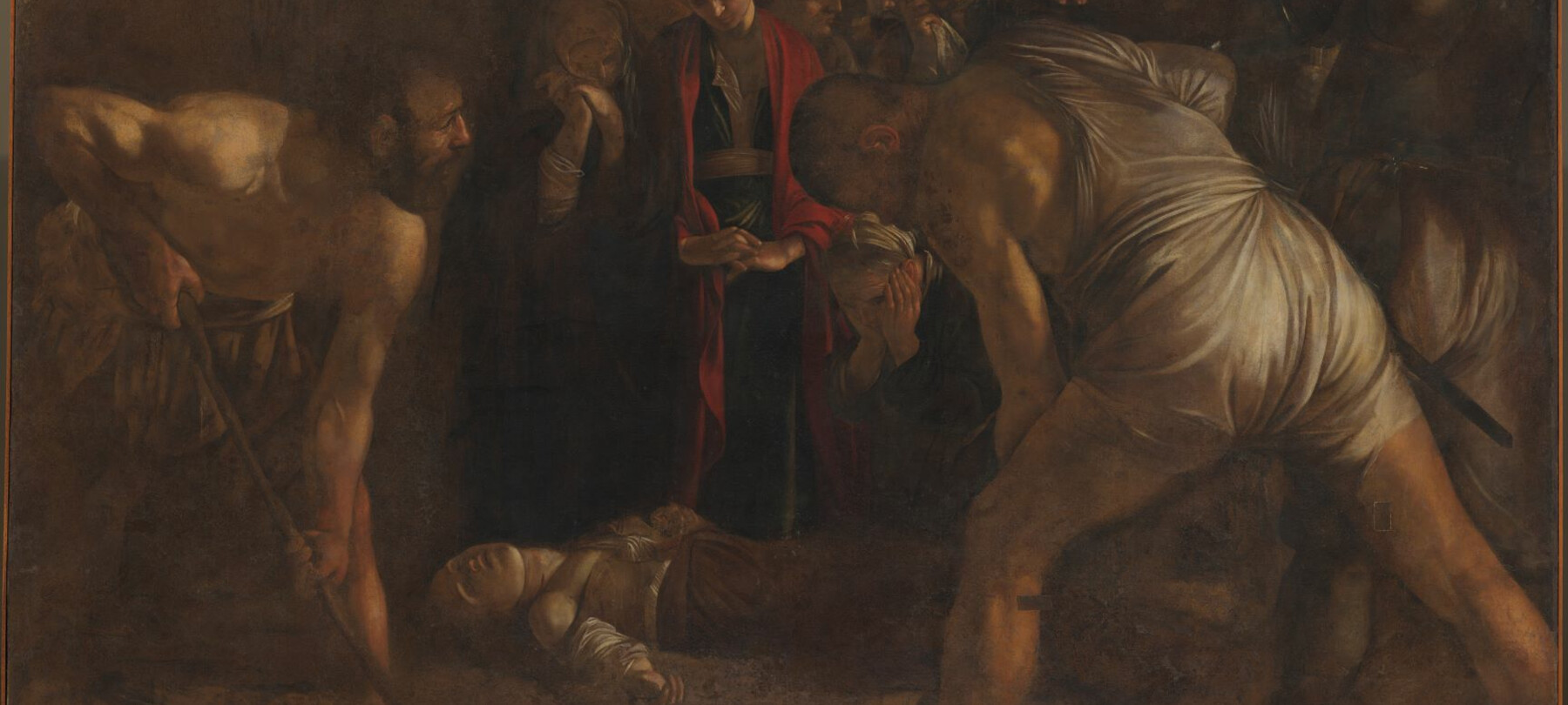Insieme al capolavoro di Caravaggio, il percorso espositivo comprende infatti una selezione di opere di Alberto Burri, tra cui i suoi famosi Sacchi; il grande dipinto I naufraghi del pittore realista Cagnaccio di San Pietro; le opere dell’artista Nicola Verlato e del fotografo Massimo Siragusa, e alcune fotografie sulla vita e la morte di Pier Paolo Pasolini.