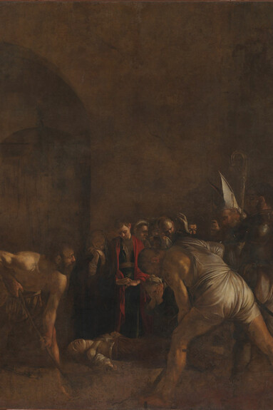 Caravaggio realizzò questo grande dipinto (408 x 300 cm) nel 1608, dopo essere evaso da una prigione nell’isola di Malta. È un’opera del suo periodo maturo, in cui riecheggia il tema cupo della decapitazione, come si evince dai segni sul collo della santa. Un’ossessione per l’artista, su cui pendeva una condanna a morte dello Stato Pontificio per l’omicidio di Ranuccio Tommasoni a Roma nel 1606.