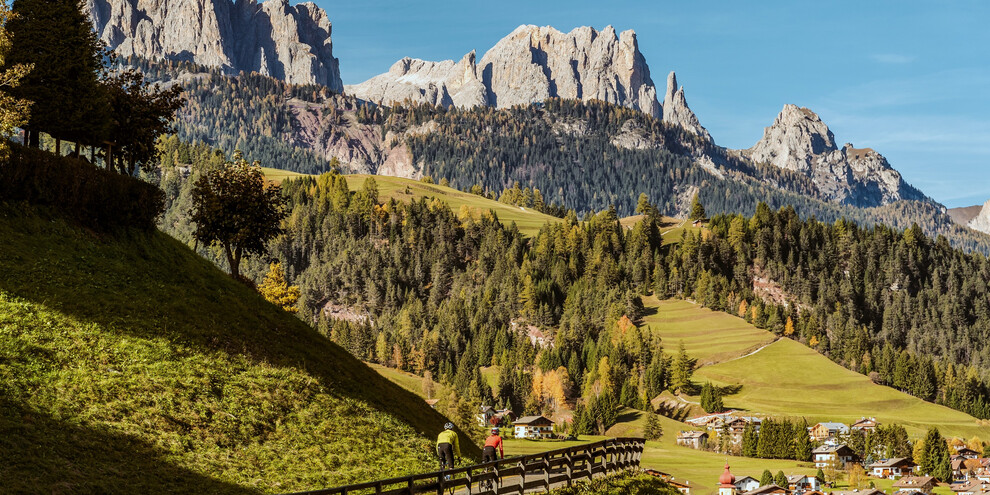Così può capitare di passare dal profumo del carpino nero a quello degli ulivi nella stessa giornata, pedalando lungo lo stesso percorso. Oppure di girare lo sguardo e vedere un castello affacciarsi tra boschi e vigneti su in collina, o di percorrere una ciclabile abbracciata dalle Dolomiti.