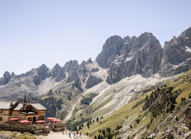 Puoi arrivarci con una facile escursione in giornata, partendo direttamente dal Rifugio Gardeccia o da Pian Pecei (raggiungibili rispettivamente con una navetta o con l’impianto da Pera di Fassa).