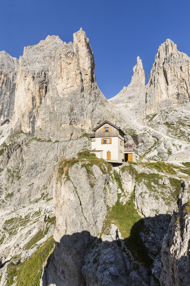 Nei primi anni del Novecento il Catinaccio era, a tutti gli effetti, il regno di Tita Piaz e della sua famiglia. In un primo momento nel Rifugio Vajolet, di cui la moglie Marietta Rizzi era direttrice. In seguito alla morte improvvisa di Marietta, Tita, costretto ad allontanarsi dal rifugio, non accetta di lasciare l’amata località di Porte Negre e acquista un terreno a poche decine di metri dallo stesso Rifugio Vajolet, costruendovi una piccola baracca.