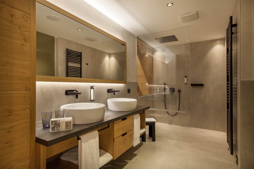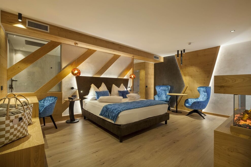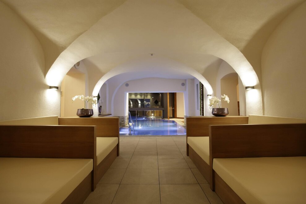 Il Sensorial Wellness World è gestito da maestri di sauna: Alpine Event Sauna, Crystal Steam Bath, Hay Bio Sauna, 3 Aree Relax: Wald, Blumen e Zen.