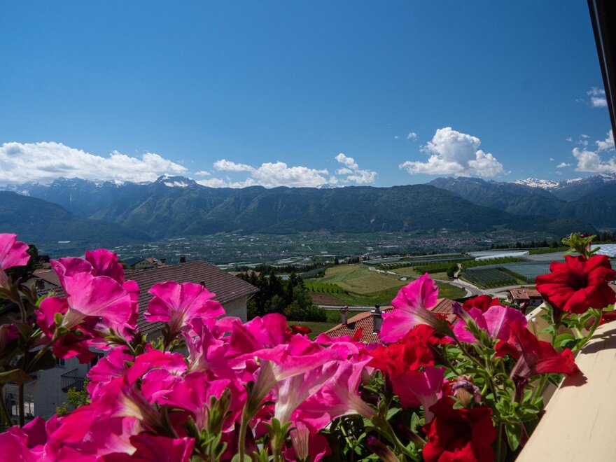 Nuovo e grande appartamento con mobili rustici e vista su tutta la Val di Non e Gruppo delle Maddalene. E' ubicato in zona tranquilla e ideale per famiglie con bambini, per chi pratica attività come trekking e mountain-bike, punto di partenza per passeggiate in campagna e in pineta. Ampio giardino con barbeque. Ascensore.