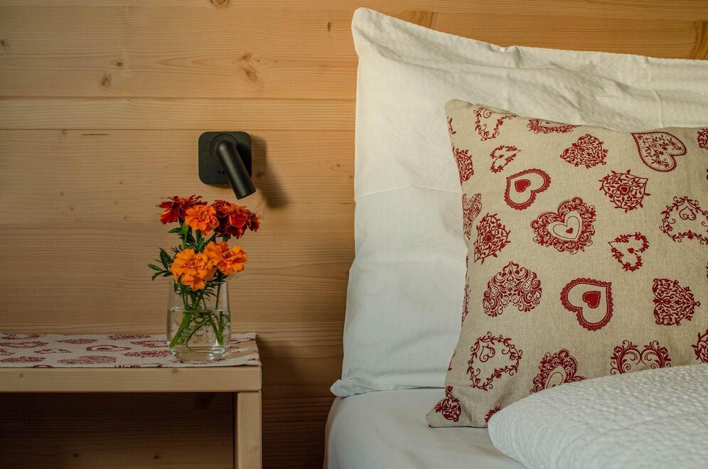 Le 3 ampie camere di cui è dotato l'Agritur Cristina sono realizzate interamente in legno, con lo stile caratteristico delle valli alpine.