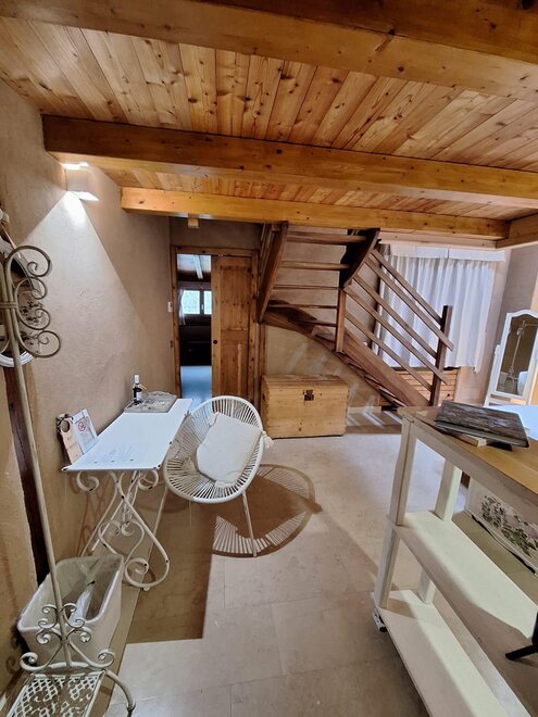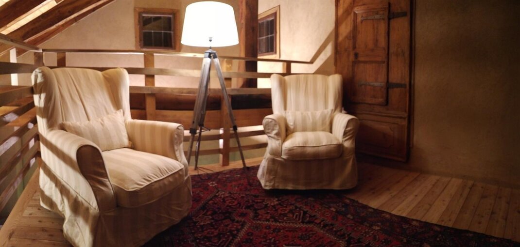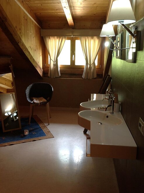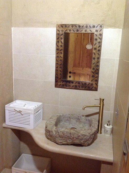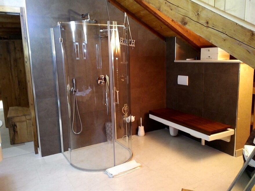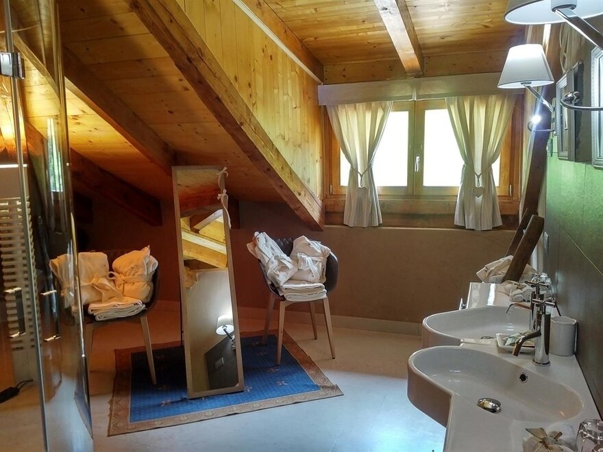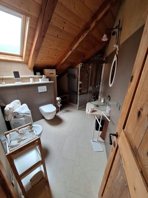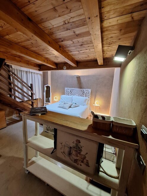 La camera Marzemino è perfetta per due persone ma anche per tre, ha un bellissimo e comodo divano a letto. Ci son due suggestive finestre nel tetto e il bagno, anch'esso una finestra nel tetto, ha il lavandino in pietra che si trovava anticamente nel maso che ospita l'agriturismo. Marzemino è il nome del vino tipico della nostra valle, la Vallagarina. Le pareti sono tutte costruite con l'argilla. troiverete la radio in camera ed in bgano, l'aria condizionata, WiFi, biscotti del benvenuto e mobili fatti a mano con il legno del vecchio maso.