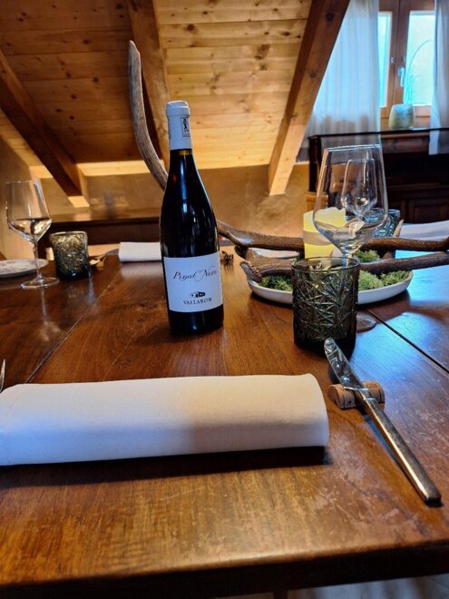 La camera Pinot nero prende nome sia dal vigneto su cui si affaccia che dal vino, uno tra i più importanti dell'azienda.