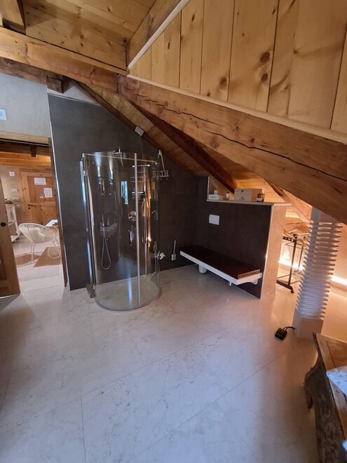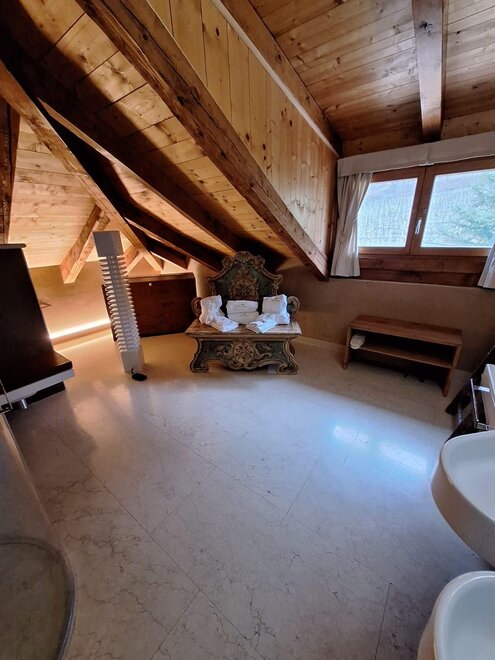 E' molto ampia, silenziosa, dotata di un soppalco, abbaino, una finestra e due finestre nel tetto elettriche.