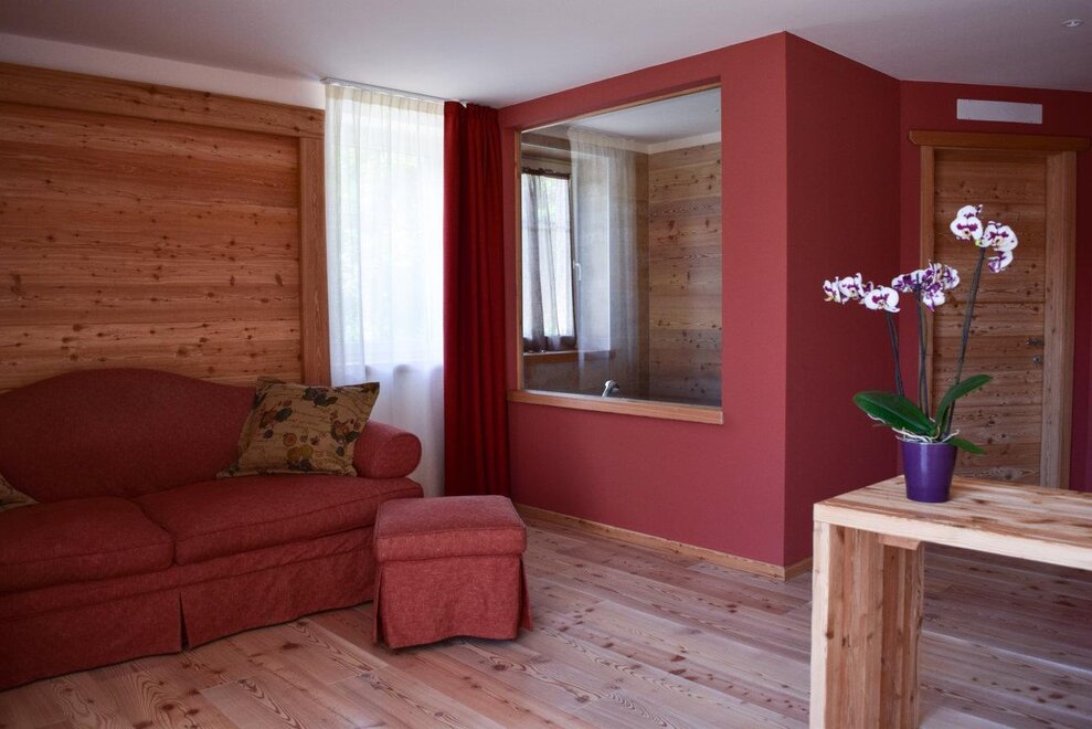 Welcome to the new Suite furnished in larch! Composed by one bedroom and one large living area, bathroom with whirlpool bath, balcony, TV, telephone, safe, hairdryer, Wi-Fi, minibar. Mountain view and Valley, with elevator and connected directly to the Wellness Center.
