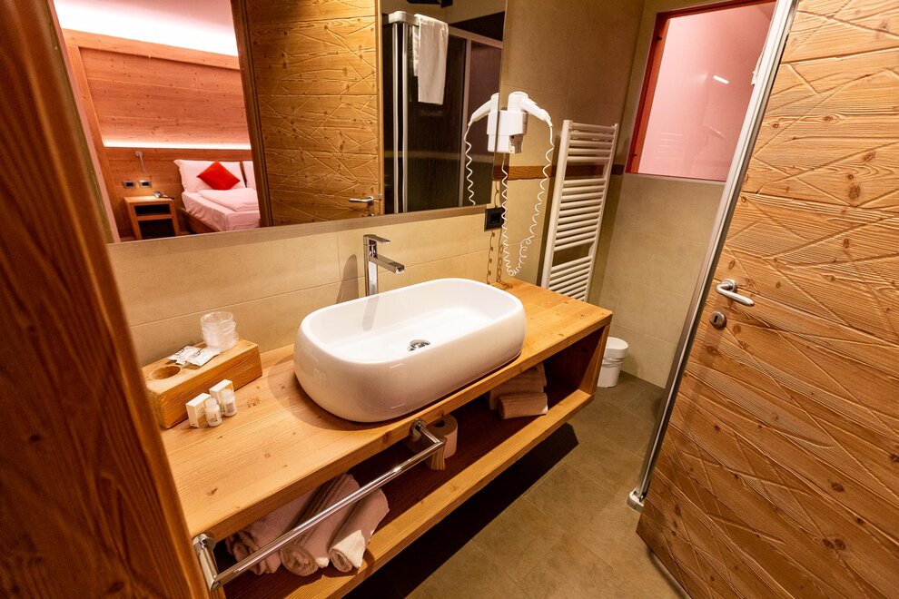 Welcome to the new Deluxe Room! Relax and enjoy unforgettable moments of wellness. This room is furnished in wood, ideal for a holiday in the pair, equipped with telephone, wi-fi, digital TV, private services with shower hair dryer, safe box and mini-bar. Directly connected to the Wellness Centre with Beauty by elevator.