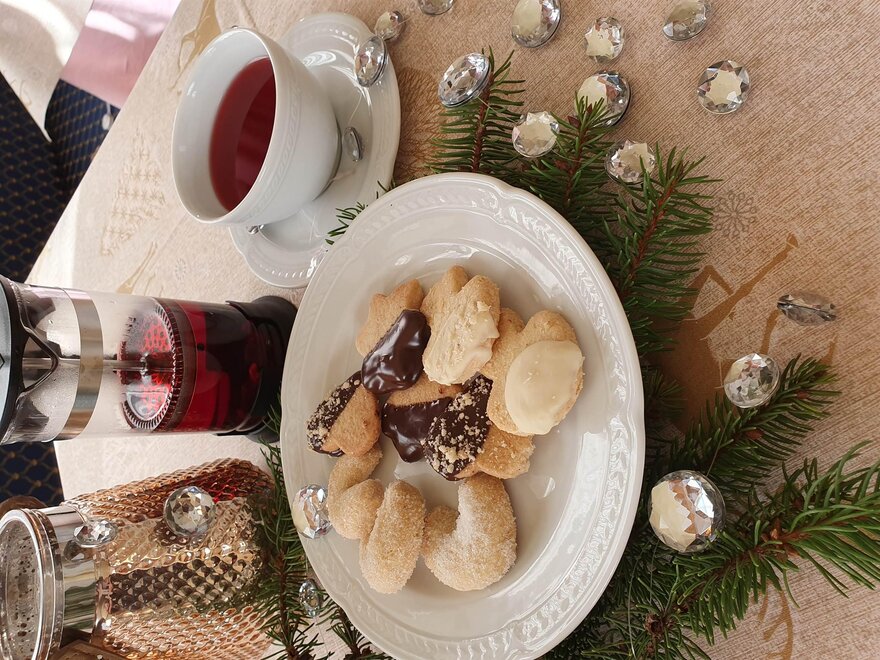 Tutte le mattine vi diamo il buongiorno con una ricca colazione a base di formaggi e salumi locali, yogurt e marmellate, miele e cereali, uova e bacon, buonissimi dolci fatti in casa come crostate, torta di mele e strudel, ciambelle al cioccolato, plumcake dolci e salati.