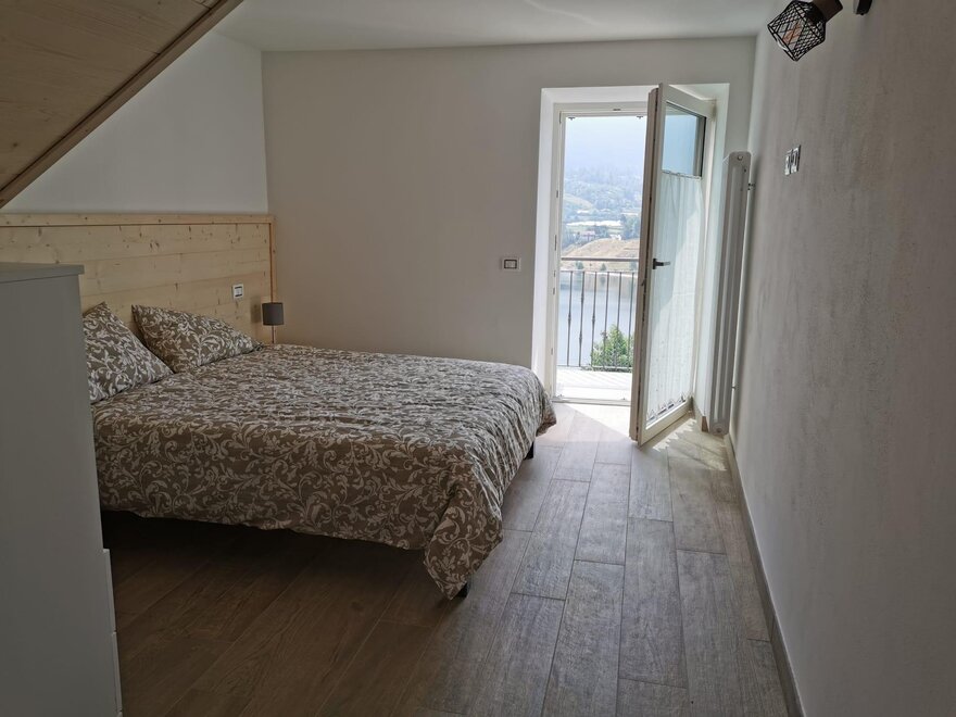 L'appartamento è situato al secondo e ultimo piano ed è disposto su due livelli. Nel primo livello ingresso, soggiorno cucina con divano letto matrimoniale, smart tv, camera matrimoniale, ampio bagno con doccia e piccolo terrazzo. Dall'ingresso una scala interna porta al secondo livello composto da un'ampia mansarda con una finestra vista lago e un abbaino, un letto a castello e un letto singlo, smart tv, bagno con doccia. A disposizione per tutti gli appartamenti locale lavanderia con lavatoi, lavatrici ed asse da stiro. Nel locale è anche possibile ricoverare biciclette o altra atrezzatura sportiva.