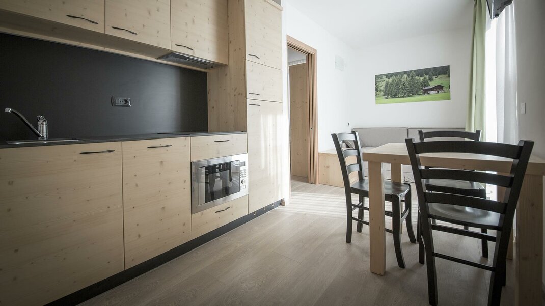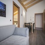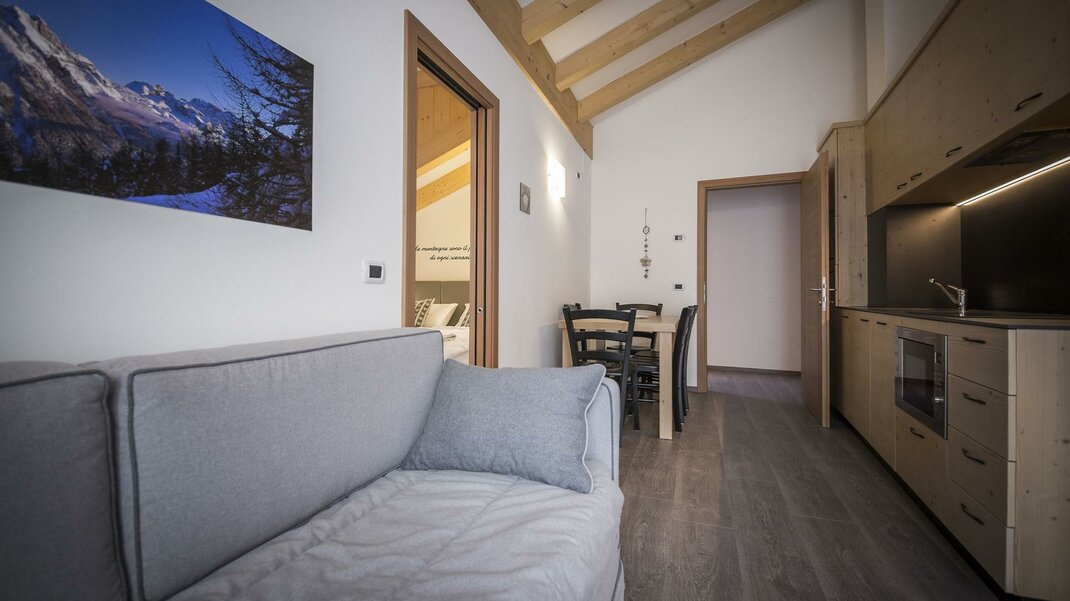 Abbiamo scelto il massimo nelle finiture per realizzare un ambiente moderno, funzionale, ma “dal sapore di montagna”; tutti i nostri appartamenti sono realizzati in stile unico, utilizzando materiali tipici di montagna di grande pregio. I nostri suite - appartamenti sono forniti di stoviglie e biancheria da letto, da bagno e da cucina. Appartamenti di Mq 28. Adatti ad ospitare 2 persone. Gli appartamenti sono così composti: camera doppia, bagno completo, cucina-soggiorno con divano letto, balcone.