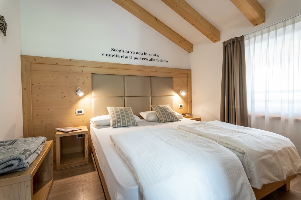 del soggiorno.Le tariffe comprendono: alloggio, colazione, consumi di acqua e energia elettrica, riscaldamento; biancheria da bagno, da letto e da cucina con cambio al bisogno, pulizia giornaliera (escluso angolo cottura), utilizzo area wellness, deposito sci e scarponi riscaldato, deposito bike, parcheggio privato esterno, wifi, bus navetta per gli impianti.Al check cauzione di 100,00€ completamente rimborsabile al check out previa verifica dell'appartamento autonomamente pulito angolo cottura e rimozione dei rifiuti, o verrà addebitato un supplemento di 25 €.