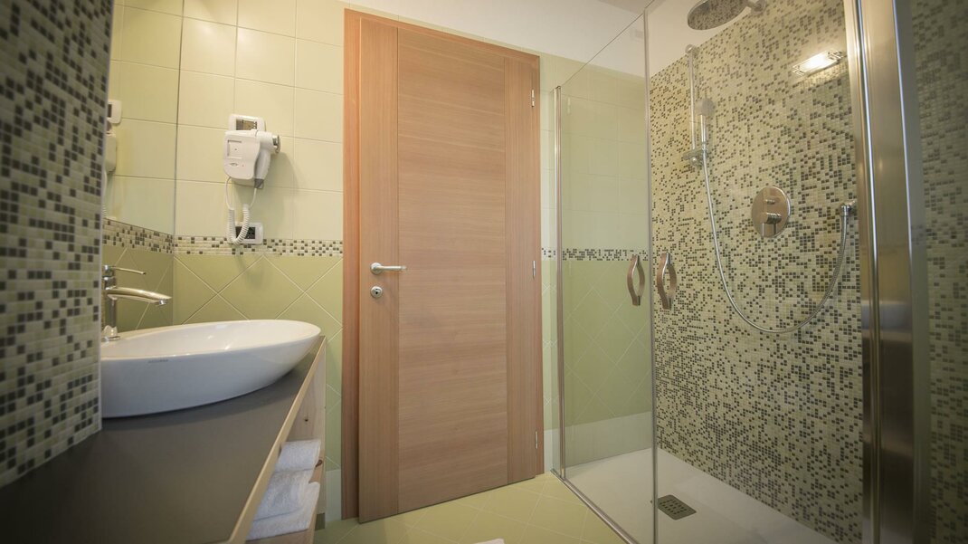 doccia a filo pavimento, ampio spazio in doccia e bagno