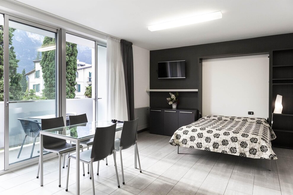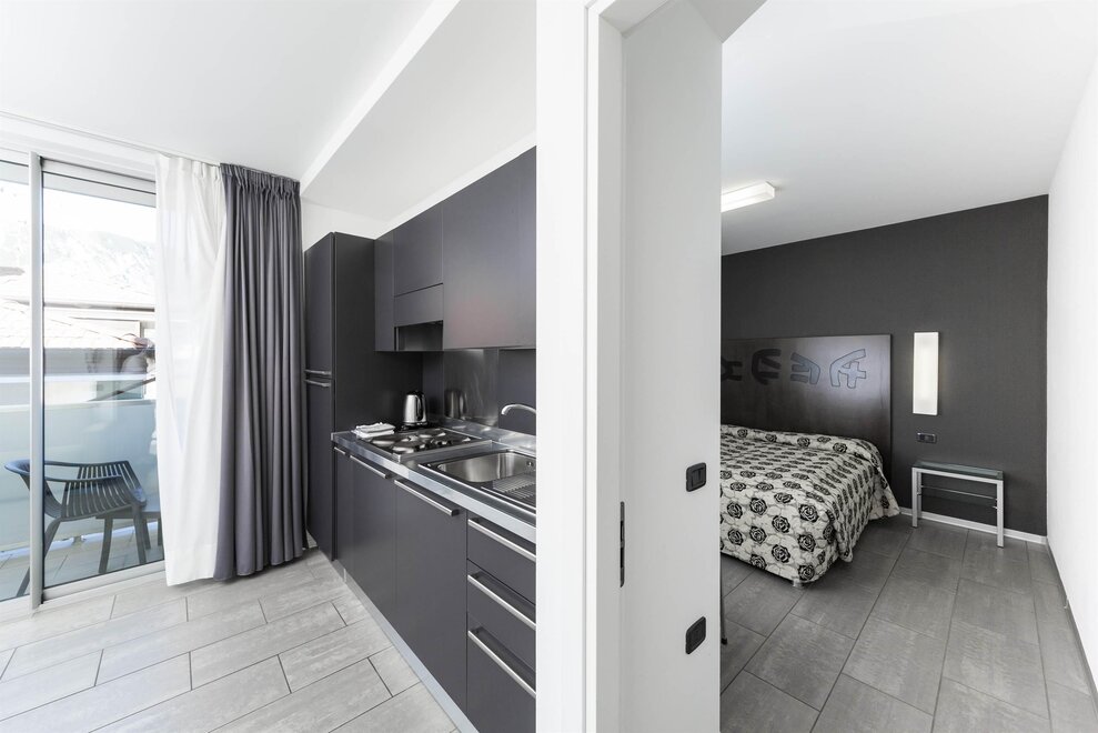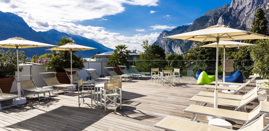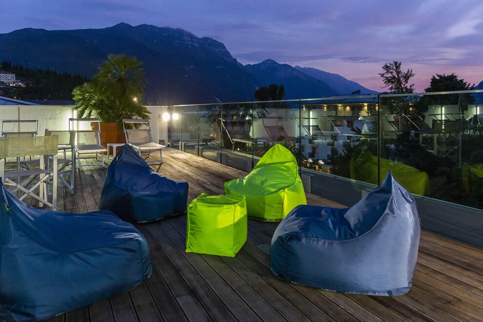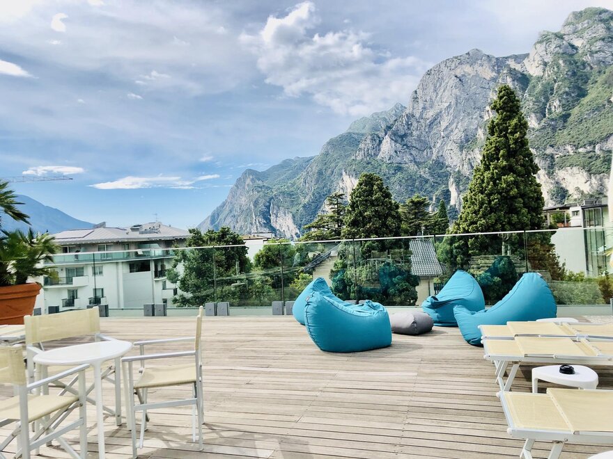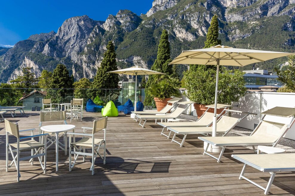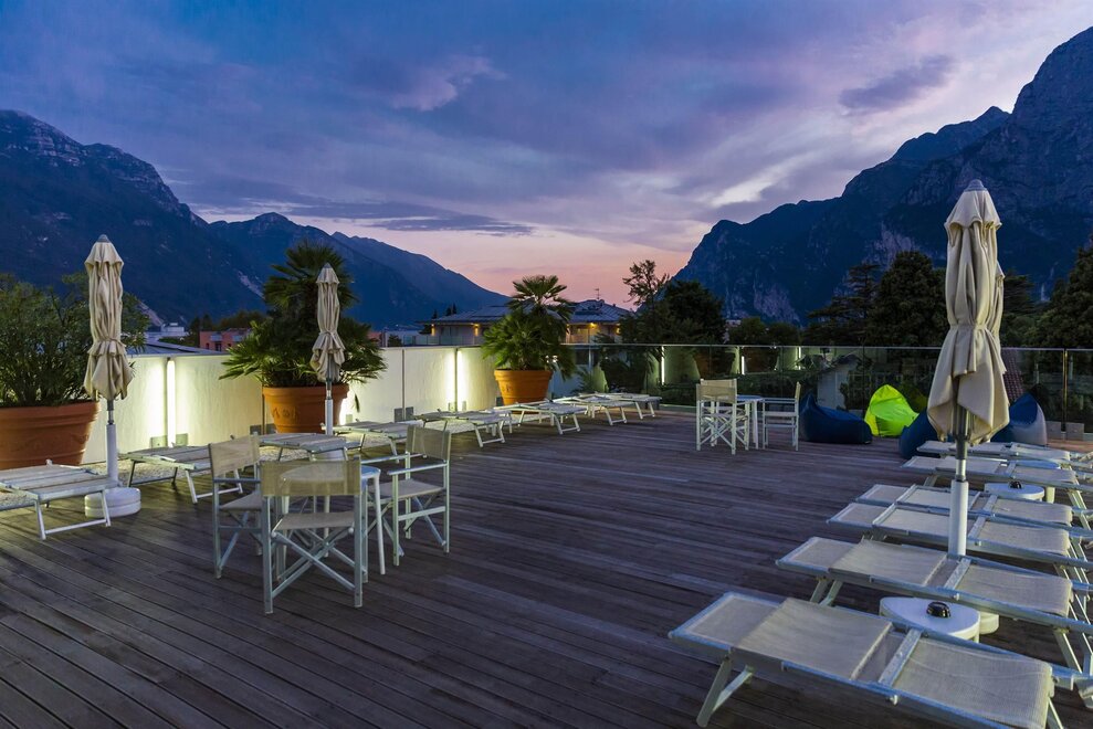 La struttura dispone anche di un ampio terrazzo per il completo relax, dal quale si gode di una delle più suggestive e spettacolari vedute del Lago di Garda e delle montagne che la circondano. Gli appartamenti completamente rinnovati, sono moderni, curati nei minimi dettagli climatizzati e dotati di ogni comfort; dispongono di balcone, TV satellitare e zona giorno con angolo cottura.