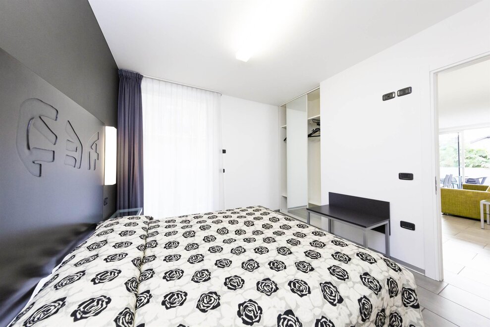 Bilocale al primo piano dedicato alle famiglie di 2/4 persone: dispone di camera da letto matrimoniale, soggiorno con divano letto matrimoniale, angolo cottura adeguatamente attrezzato, bagno con doccia, balcone (laterale). L'appartamento, inoltre, è dotato di riscaldamento ed aria condizionata autonomi, TV satellitare e cassaforte.