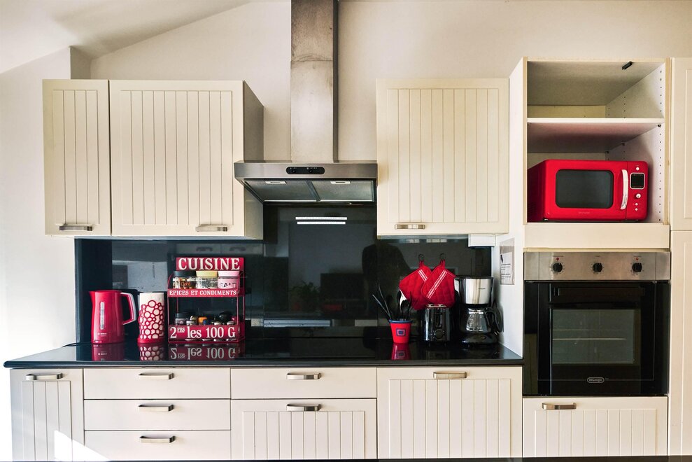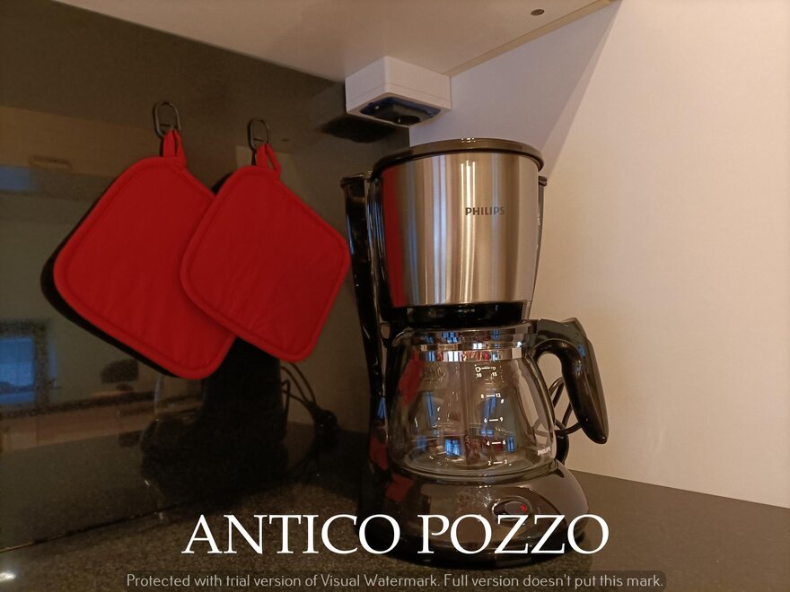 Comprende una camera matrimoniale, una seconda camera con due letti singoli, un bagno con doccia, WC, bidet, lavatrice e asciugacapelli, salotto/cucina con smart TV collegata ad internet, frigorifero con freezer, forno, microonde, lavastoviglie, tostapane, bollitore e una macchina per il caffè tedesco/americano.