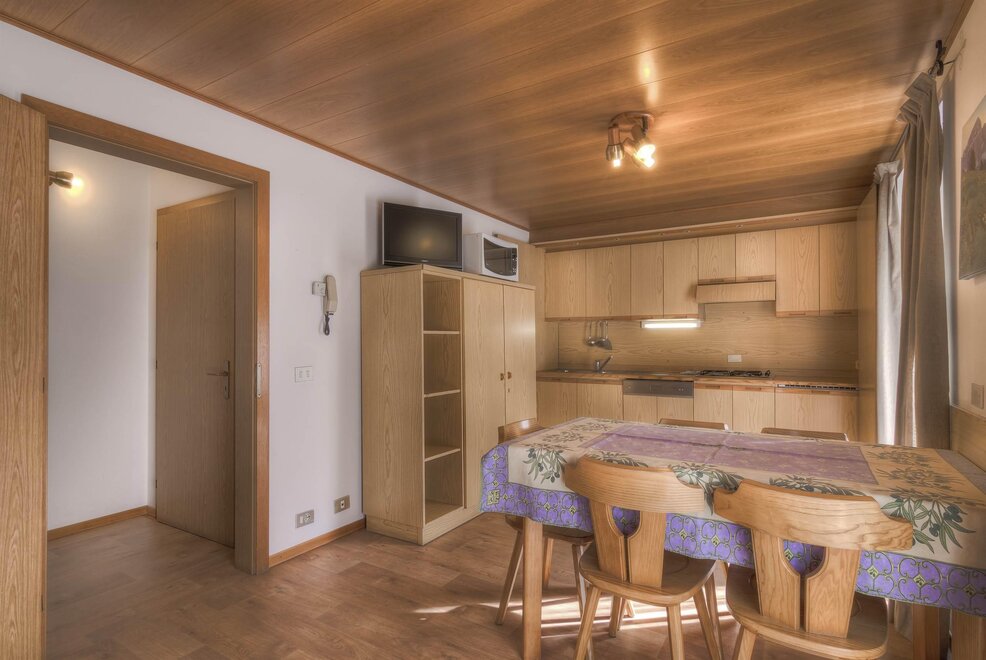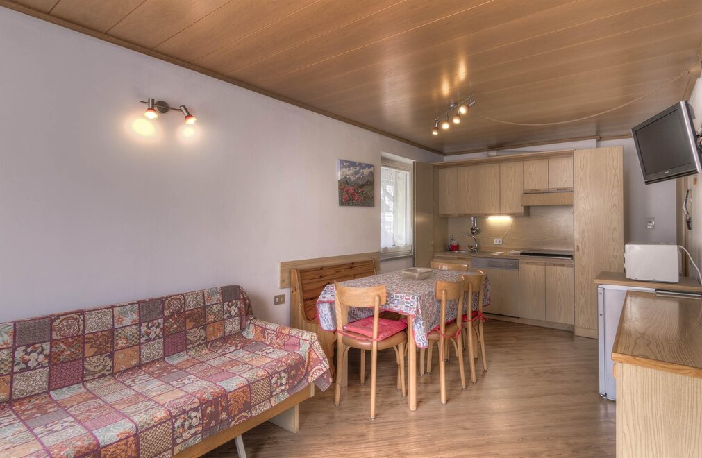 Appartamento funzionale composto da una camera da letto per 2/3 persone, bagno, cucina con angolo a sedere, lavello, frigorifero, microonde, bollitore, stoviglie.