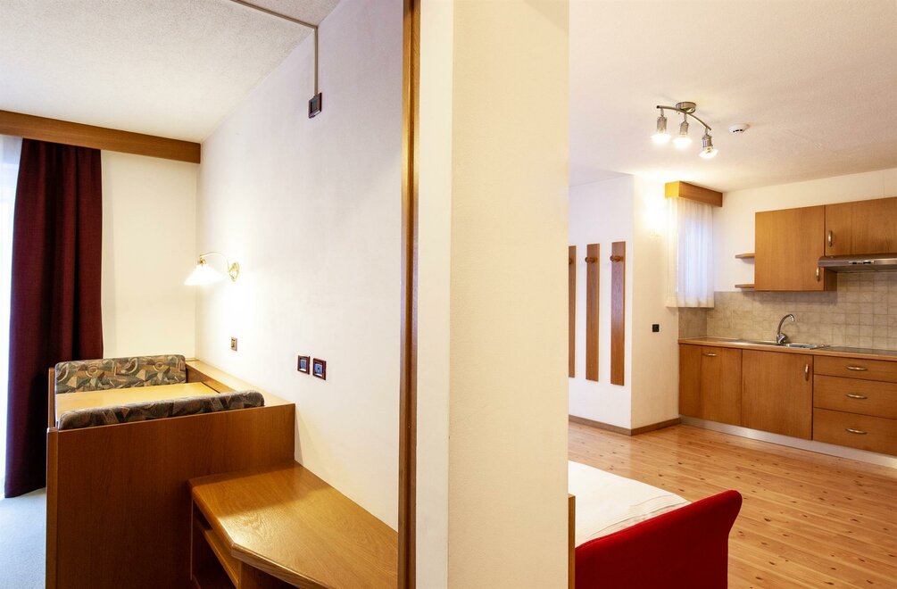 Appartamenti tipo "BS" I nostri appartamenti bilocali BS sono stati di recente rinnovati e sono tutti curati in ogni dettaglio. Bilocali di 40-55 mq con stanza matrimoniale, un bagno, soggiorno con 2 posti letto singoli e angolo cucina. La cucina è curatissima ed è dotata di tutti i comfort: frigorifero, lavastoviglie, forno a microonde, piastra 4 fuochi in vetroceramica. Sono particolarmente adatti a famiglie o gruppi di amici di 3-4 persone. Alcuni sono situati al piano terra e dispongono di un terrazzino privato e secondo ingresso autonomo, altri invece si trovano al primo piano e dispongono di un ampio balcone privato. Uno invece si trova in mansarda, con piccolo balcone privato e una camera matrimoniale particolarmente curata e raffinata. LE QUOTE COMPRENDONO la biancheria da letto, da bagno e da cucina con cambio settimanale, i consumi energetici.