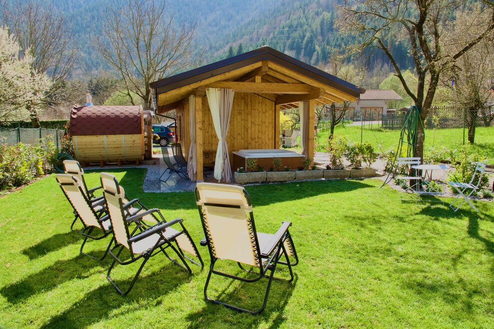 Il giardino è CONDIVISO ed è dotato di vasca idromassaggio e sauna a legna SU PRENOTAZIONE.