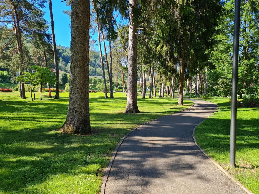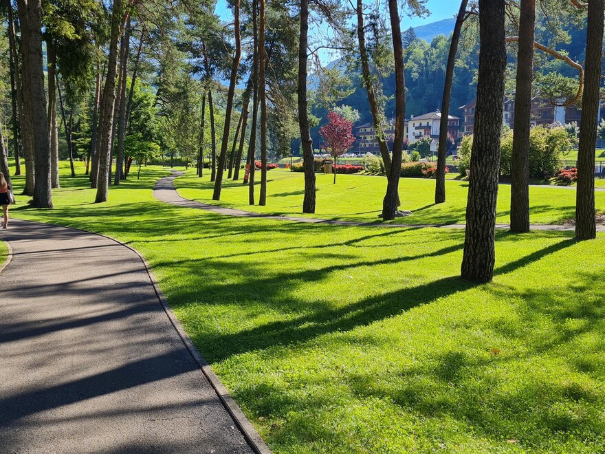Per chi necessita della cura termale, una tranquilla passeggiata attraversa il parco e raggiunge lo stabilimento termale.