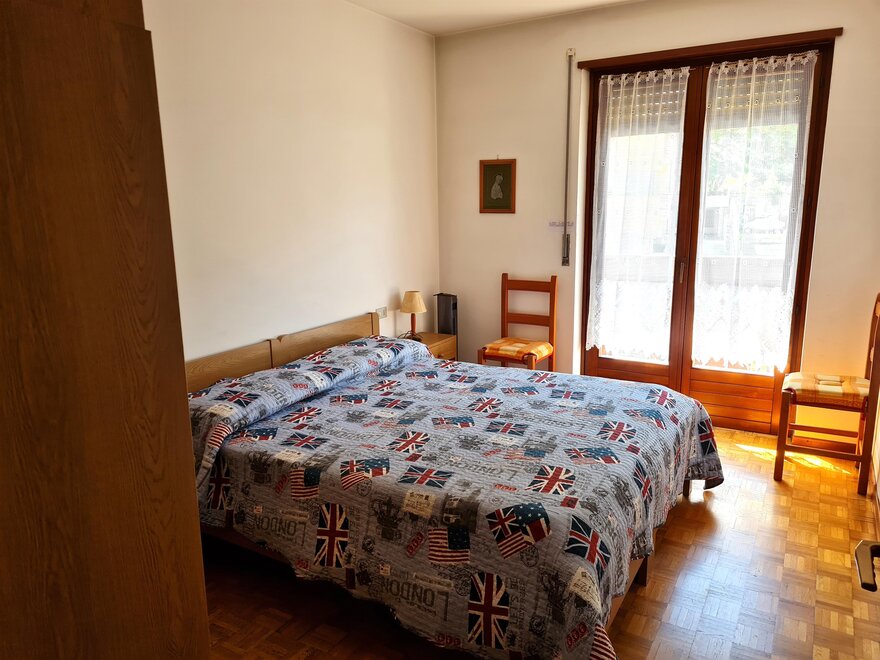 Appartamento per vacanze al secondo piano di 70 mq composto da zona giorno con cucina e soggiorno con divano letto (con secondo letto estraibile) e zona notte con una camera matrimoniale. L'appartamento è dotato di TV, lavastoviglie, stoviglie e pentole, forno, forno a microonde, frigorifero, piano cottura a induzione, aspirapolvere, ferro e asse da stiro, lavatrice, asciugacapelli, ripostiglio, cantina, riscaldamento centrale, balcone, cortile, posto macchina all’aperto, garage, ascensore, e biancheria su richiesta (per camera e per bagno).