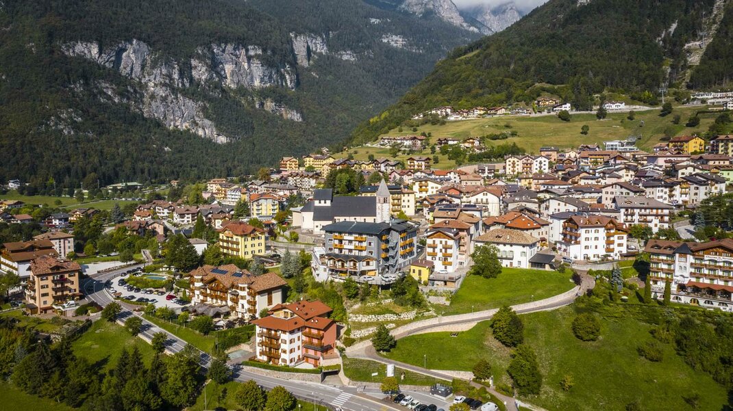 - Vista sulla piazza della Chiesa e sulle maestose Dolomiti di Brenta.