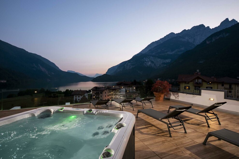 Siamo in centro paese e offriamo un ampio e meraviglioso panorama sul lago e sulle Dolomiti di Brenta.