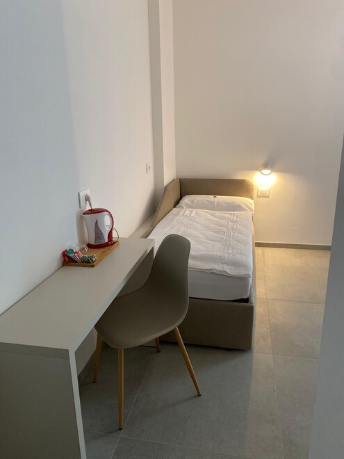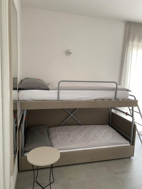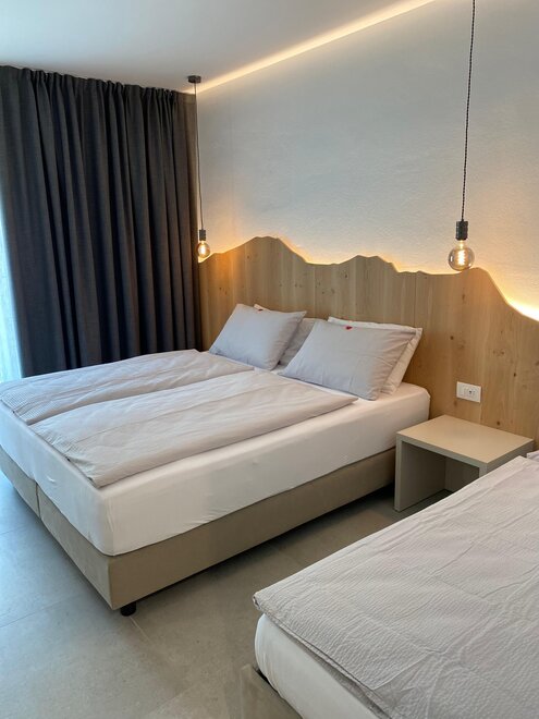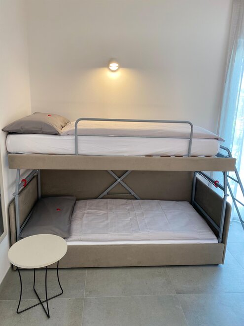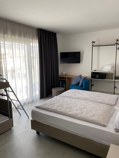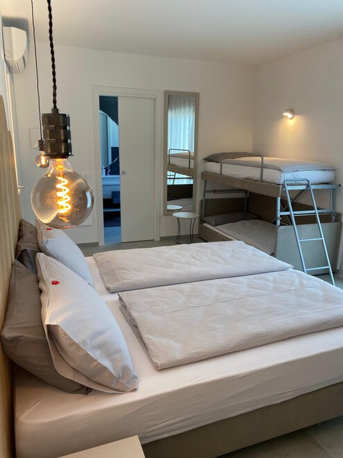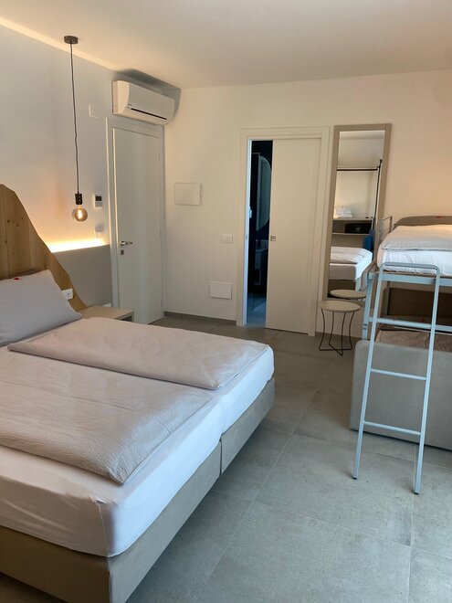 Ampia e funzionale, la nostra camera quadrupla a Nago è la soluzione ideale per famiglie o piccoli gruppi di amici alla scoperta del Lago di Garda. L'ambiente, caratterizzato da un design minimal ed essenziale, offre tutto lo spazio necessario senza rinunciare al comfort.