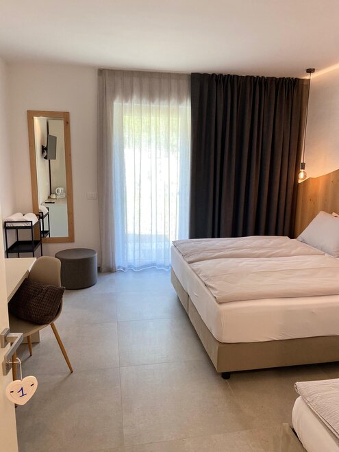 La funzionalità incontra lo stile in questa stanza dove ogni elemento è stato scelto con cura: bagno privato con doccia, connessione Wi-Fi, aria condizionata e una vista che vi ricorderà la bellezza del territorio trentino.