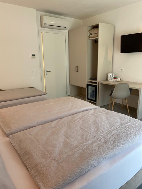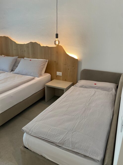 La nostra camera tripla Superior a Nago eleva l'esperienza di soggiorno con spazi più generosi e dettagli curati, pur mantenendo l'eleganza minimal che caratterizza il nostro B&B. Più ampia rispetto alla tripla standard, offre un comfort superiore per famiglie o piccoli gruppi in visita al Lago di Garda.