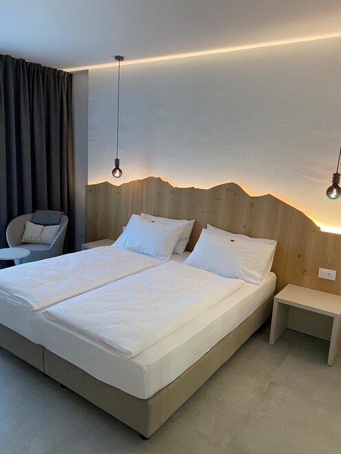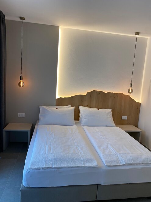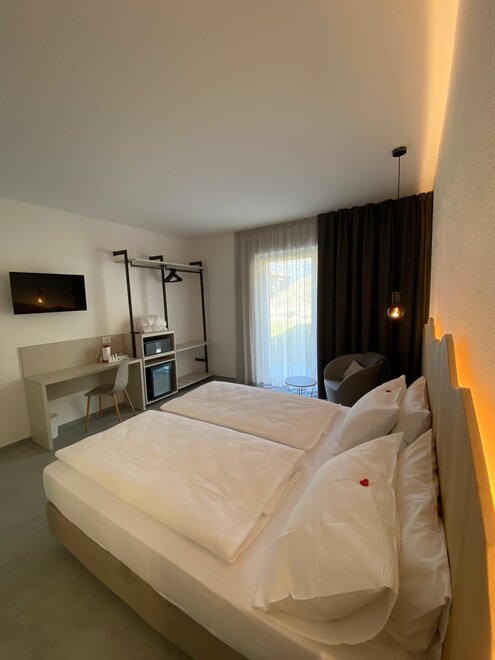 Essenziale e accogliente, la nostra camera doppia a Nago offre un'esperienza di soggiorno autentica a pochi minuti dal Lago di Garda. Lo spazio luminoso, caratterizzato da linee pulite e design minimal, è dominato da un confortevole letto matrimoniale.