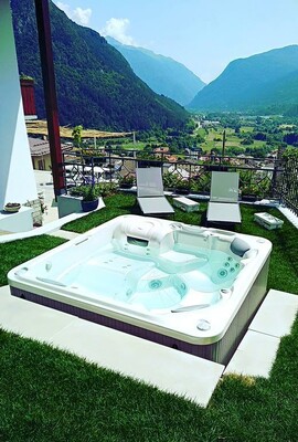 Gode di 3 confortevoli stanze, di un ampia terrazza con vista sulla valle ideale per momenti di puro relax e di una vasca idromassaggio esterna riscaldata.