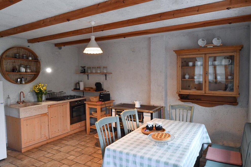 set per fonduta, tostapane, mobile da giardino, bollitore acqua, idromassaggio, cancelletto per le scale, riscaldamento centralizzato, TV, presa elettrica vicino al letto, scrivania, ferro da stiro, frigorifero, asciugacapelli, cucina abitabile, essenziali (Asciugamani, lenzuola, sapone e carta igienica), cucina a gas, camera/app. non fumatori, microonde, prodotti bagno, seggiolone, biancheria tavola-cucina, WiFi, utensili da cucina, stoviglie fornite, lavatrice, camera/appartamento tranquillo, prato, macchina caffè, congelatore a disposizione, forno, ripostiglio, barbecue in giardino, mobili tipici, stufa a legna, max. animali domestici: 2, pavimento in legno o parquet, terrazza, accappatoio, fasciatoio, giardino