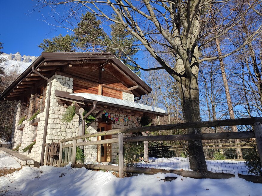 La baita dispone di un piccolo giardino recintato, barbecue e siamo felici di accogliere anche i vostri cani.