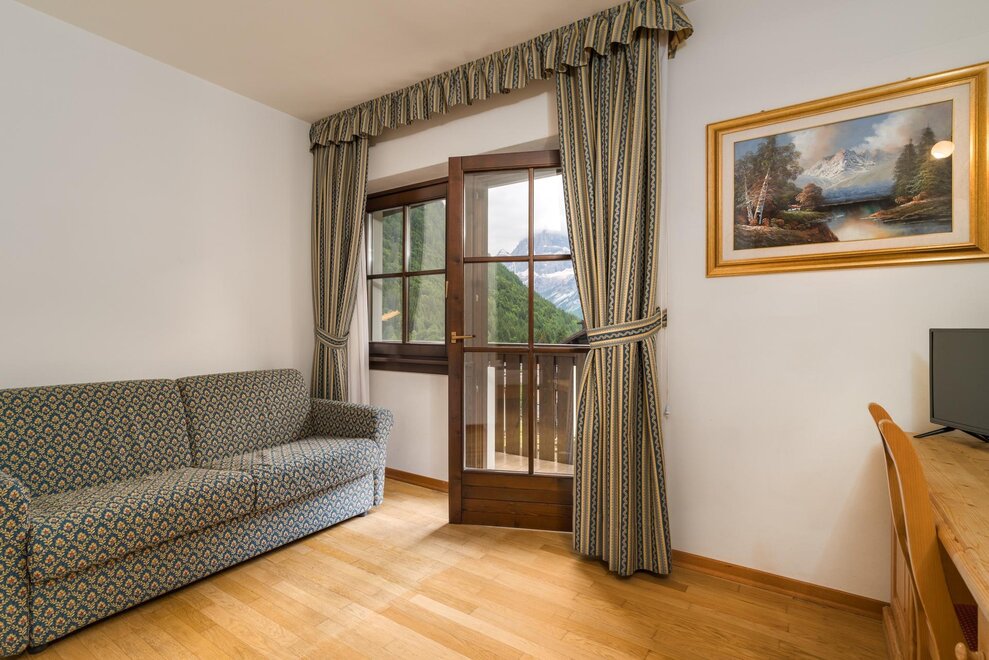 La nostra camera singola ti invita a scoprire la tranquillità di un ambiente in cui il legno dimontagna regna sovrano, creando un'atmosfera genuina e accogliente. Alcune cameredispongono di un balcone privato, con vista sulle Dolomiti e Madonna di Campiglio: affacciati,respira profondamente, e lasciati incantare dalla quiete del paesaggio circostante.