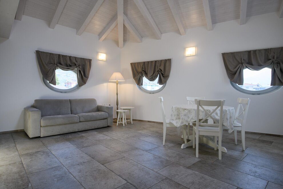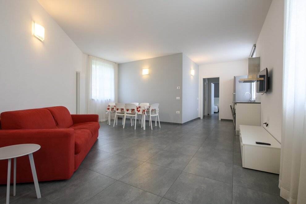 Appartamento con ingresso indipendente: soggiorno con divano letto e cucina completamente allestita con piano cottura, forno, frigorifero, lavastoviglie, piano ad induzione e utensili da cucina, una stanza da letto e bagno con doccia. Può ospitare da 2 a 4 persone Dotazioni: biancheria, asciugamani, TV a schermo piatto con canali satellitari, cassaforte, asciugacapelli, riscaldamento, aria condizionata. Su richiesta bollitore elettrico. Dimensioni: 50-52 mq NB. Le immagini di ciascuna categoria si possono diversificare fra loro per arredamento, grandezza od orientamento. Le foto mostrate sono puramente indicative.
