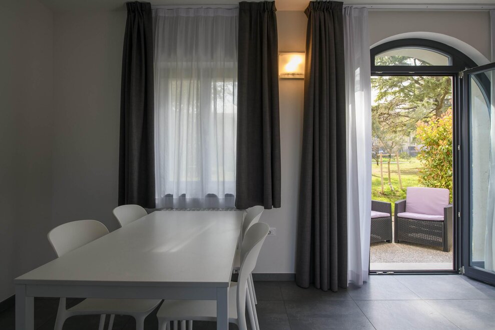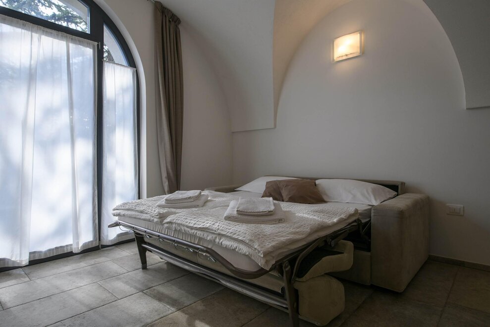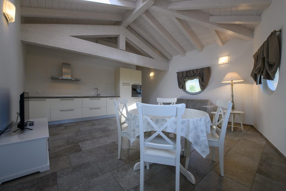 Il Borgo, circondato dal verde parco, dispone di stanze graziose non molto grandi, oppure di appartamenti molto confortevoli che possono ospitare da 2 a 6 ospiti. Sono dotati di particolare confort e luminosità e ognuno di essi è caratterizzato da una diversa impronta architettonica. Lo stile dell’arredamento è moderno. Ogni appartamento è dotato di cucina completamente allestita. Gli appartamenti a piano terreno sono dotati anche di giardino privato.