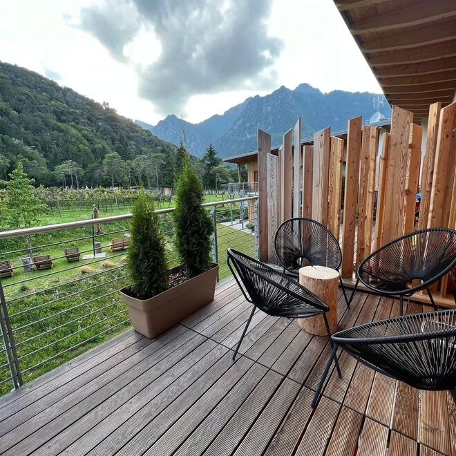 Vuoi svegliarti in un vigneto o in un bosco? Le nostre nuove stanze permettono di godere di una location unica, tutte con vista sul vigneto biologico e sulla pineta nonché accesso al giardino o al balcone privato. Le sei camere, come l’intera struttura, sono costruite nel modo più ecologico possibile, con l’uso di materiali naturali e tecniche adatte a ridurre l’impatto energetico. In tutte troverete inoltre alcuni pregiati arredi in profumato cirmolo le cui essenze migliorano il sonno ed il benessere di chi vi soggiorna donando un intenso effetto positivo sulla qualità del relax.