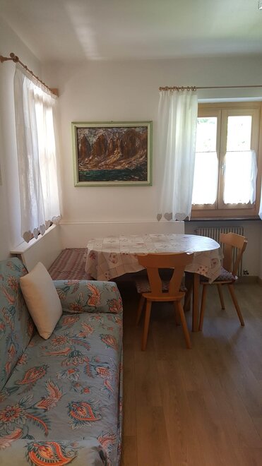 Gli spazi sono ampi e soleggiati; l'arredo, ammodernato da poco, mantiene lo stile ladino grazie ai mobili decorati e ai quadri raffiguranti le Dolomiti. Intorno alla casa, inoltre, è possibile accedere al giardino.