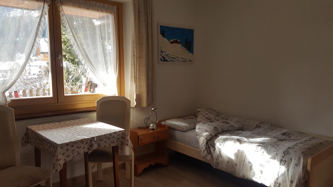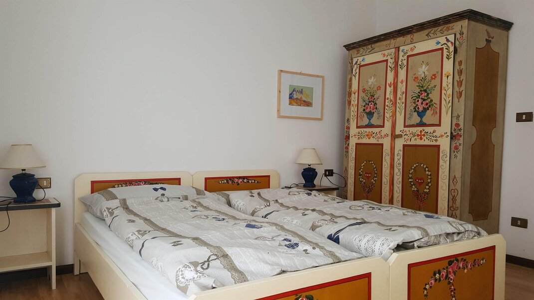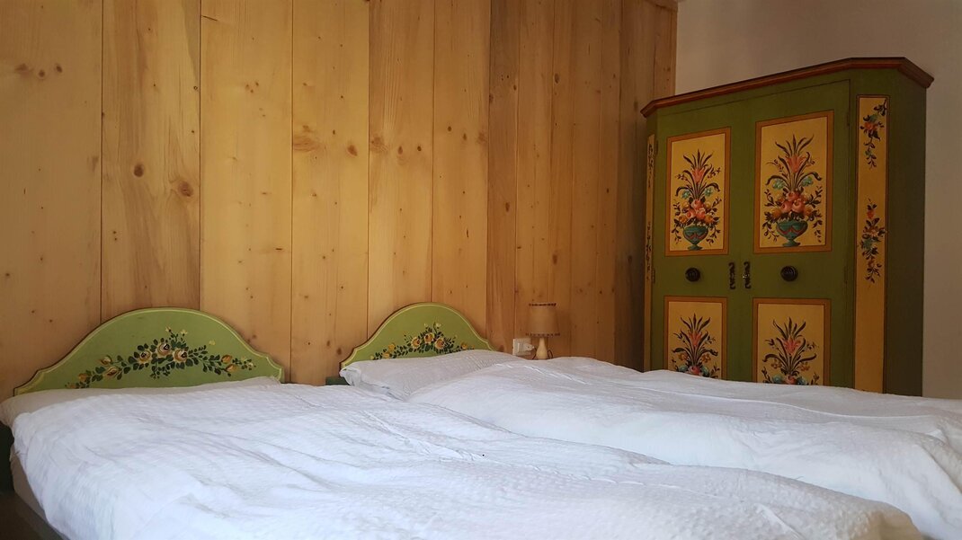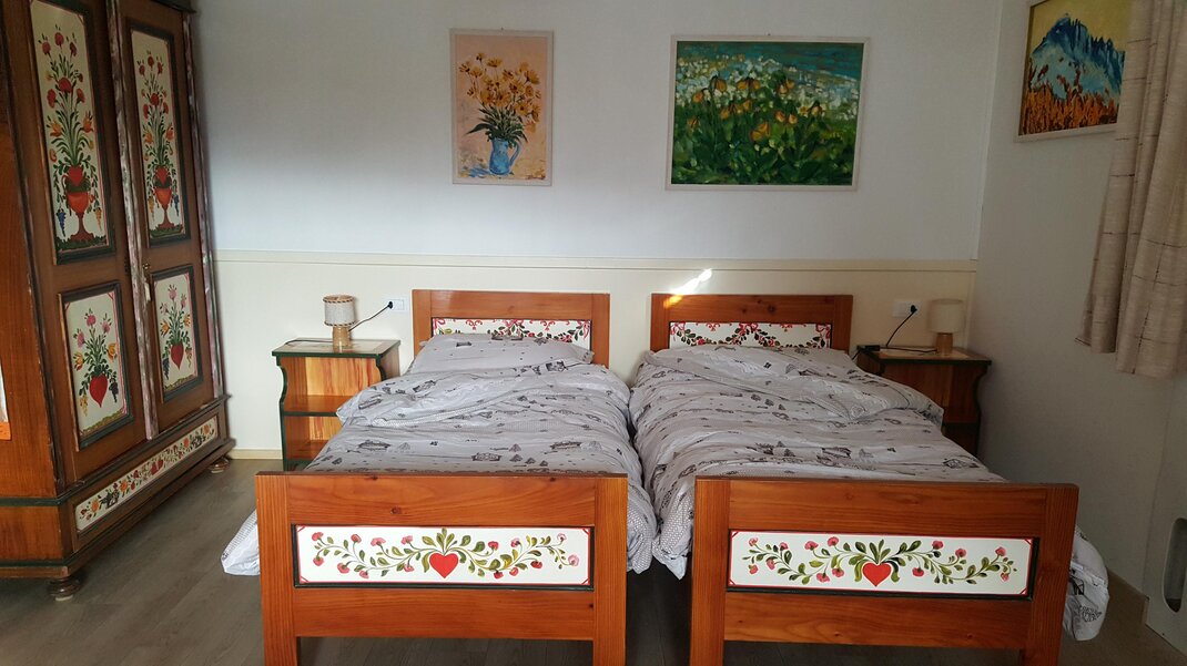 Gli spazi sono ampi e soleggiati; l'arredo, ammodernato da poco, mantiene lo stile ladino grazie ai mobili decorati e ai quadri raffiguranti le Dolomiti. Vi è un ampio balcone, mentre intorno alla casa è possibile accedere al giardino.