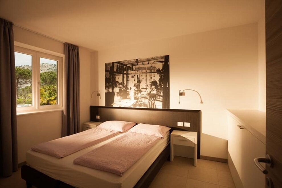 L’appartamento si trova al primo piano del nuovo edifico, ha a disposizione un terrazzo con scorcio sul lago e vista sulla nuova piscina. Dispone di 3 posti letto oltre alla possibilità di aggiungere una culla per un bambino fino a 3 anni di età. L’unità è indicata per nuclei famigliari di 3 persone adulte o fino 4 se famigliari.