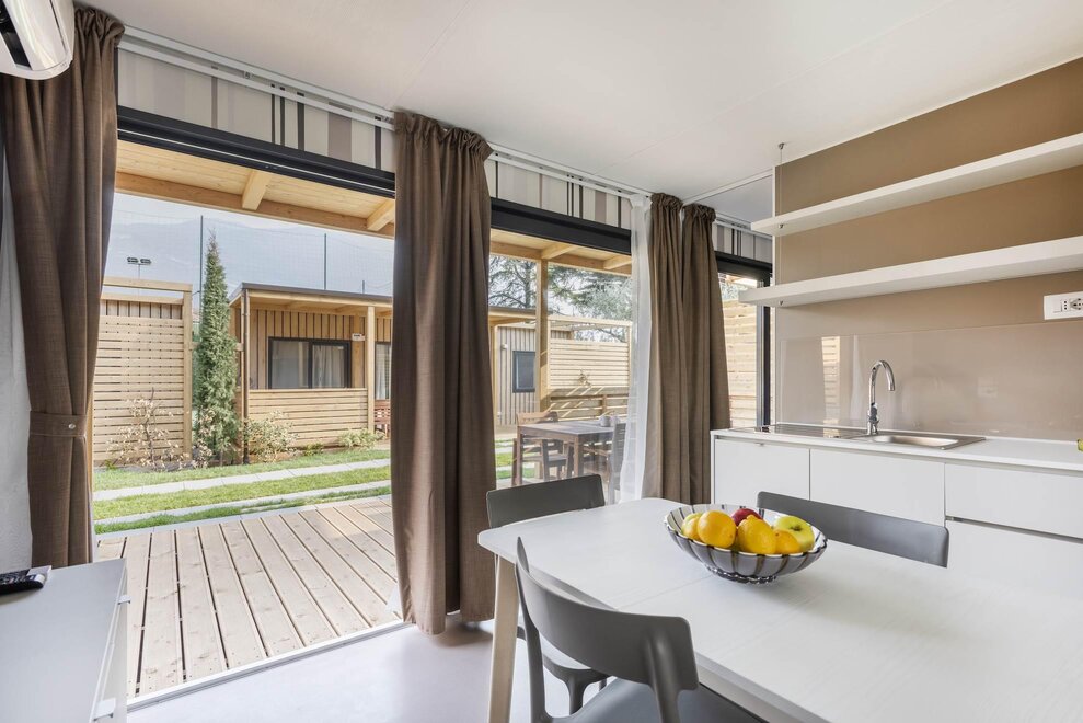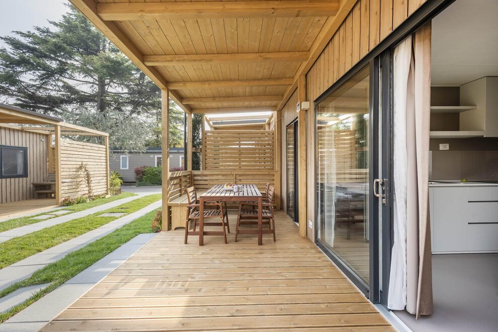 Il campeggio mette a disposizione anche 25 case mobili, divise in 3 categorie: Standard, Large, XX Large e XX Large con Jacuzzi, che possono ospitare da 2 a 6 persone, immerse nel verde, adatte a tutti, dalle coppie alle famiglie.