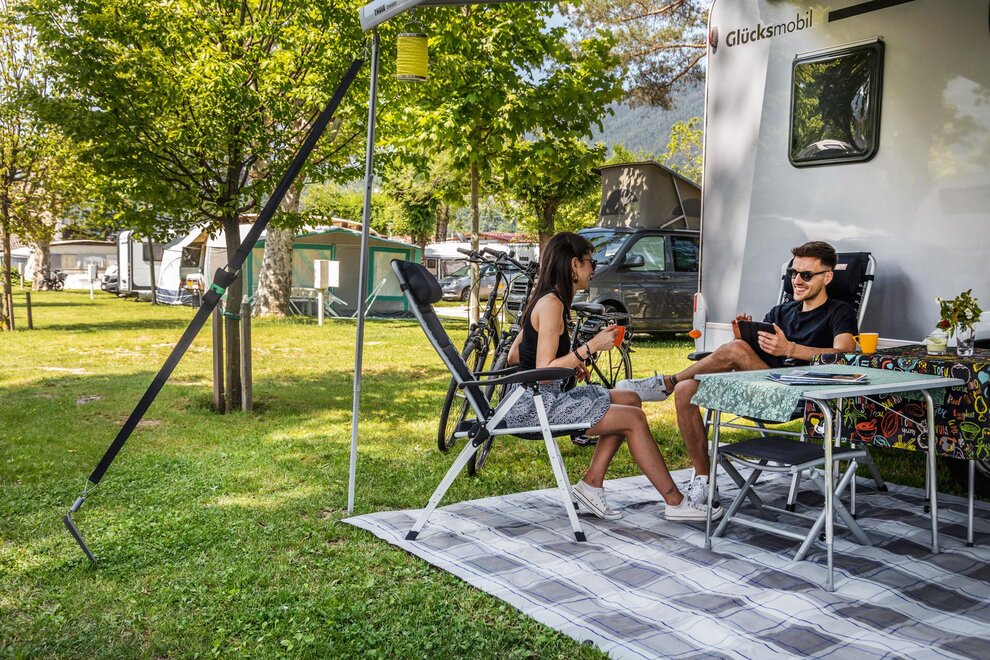 La nuova piazzola gold del campeggio Riviera offre una superficie di accampamento di 125 mq e un prelievo di corrente fino a 16 A, un punto prelievo dell’acqua, scarico acqua privato e punto TV Sat. Per il massimo del comfort!