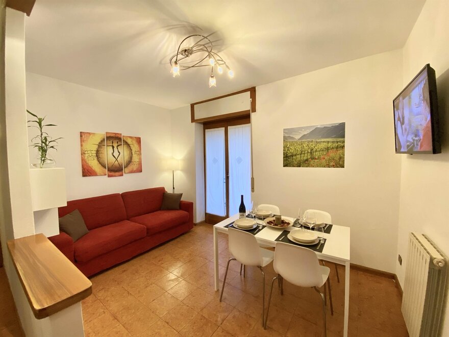 L'appartamento si trova al 1° piano di un edificio storico con un ampio cortile dove poter parcheggiare la macchina o la moto e un bel giardino ricco di piante e fiori.