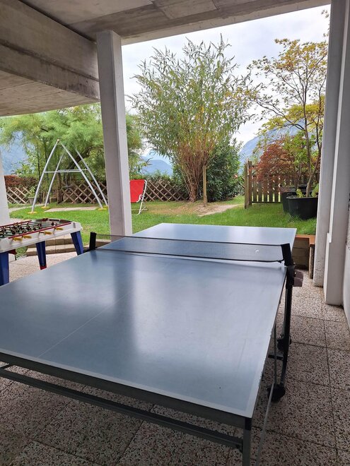 We also have a large garden and private parking only for guests of the apartment with sun terrace, patio with sitting area, and not just for the boys, soccer, table tennis and children 's swing and slide. The price includes quality linen and Molveno Card,boot warmers